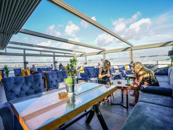 На последнем этаже есть ресторан, он довольно унылый, готовят плохо, цены высокие!