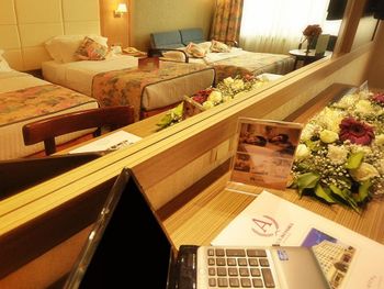 В первые дни в номере проводили уборку и ставили 2 бутылки воды. Мы бронировали на 4 дня. В 3 день уборку не сделали, воду не дали. Зато "заботливо" пополнили мини-бар!! Мини-бар по завышенным ценам.