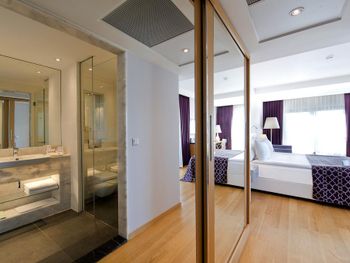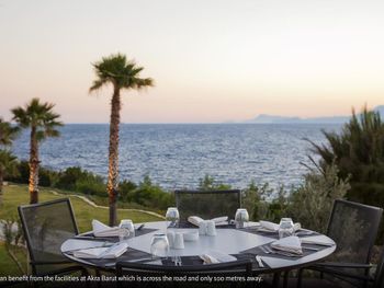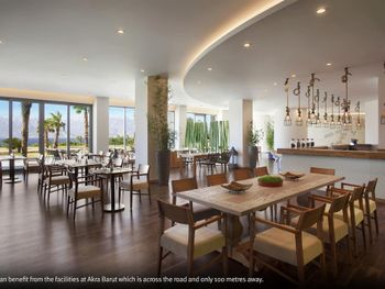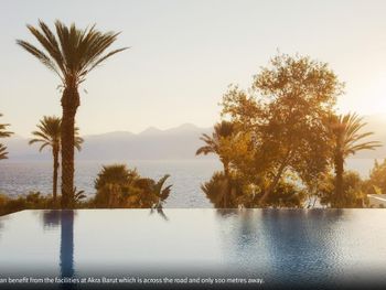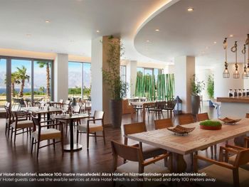 Чистота как во всем отеле, так и в номере, большой светлый номер, большая удобная кровать, чистые полотенца, пастельное, вкусные завтраки, которые проходят через дорогу в отеле Акra 5*, возможность пользоваться всеми услугами в том числе спа, бассейнами и пляжем отеля Akra 5*, вежливый персонал