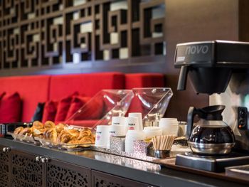 В самом отеле мы не завтракали. Увидели в номере меню ближайшего кафе и отправились туда, там нам не понравилось, дороговато и выбор скудный. На ресепшн есть бесплатные угощения, это порадовало.