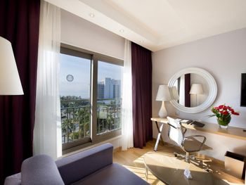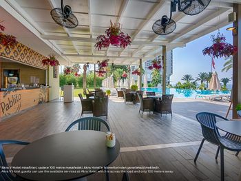 Мы уже в пятый раз в этой сети отелей AKRA, в Akra V второй раз, нравится соотношение цена качество и замечательный сервис, великолепное обслуживание, внимательный и улыбчивый персонал, в номере есть абсолютно все как в отеле 5 звезд, что напротив , есть халаты, тапочки, вода в достатке, хороший минибар, есть доска и утюг для глажки одежды, по переходу за 5 мин вы попадете на шикарный завтрак и можете пользоваться всей структурой отеля AKRA 5 звезд , в стандартных номерах нет балконов, но есть окна в пол, в виде французского балкона, номера категории люкс имеют просторные террасы с мебелью и сушилкой для белья , отдых прошел отлично, рекомендуем этот отель !