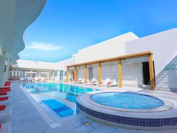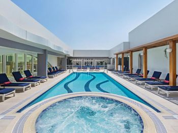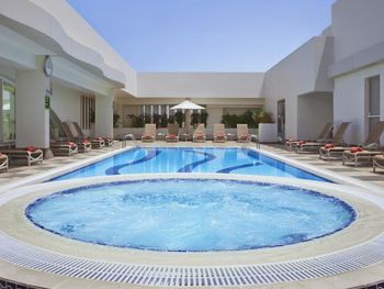 Джакузи разрешают пользоваться с 16 лет. Было временами прохладно в бассейне, дочь 10 лет хотела погреться в джакузи, но ей не разрешали. Хотя в скольких отелях Эмиратов были, джакузи не разрешали только маленьким детям. Отель как отель, ничего сверхъестественного. Расположен в не самом благополучном районе, вокруг магазины как будто на барахолке Алматы.