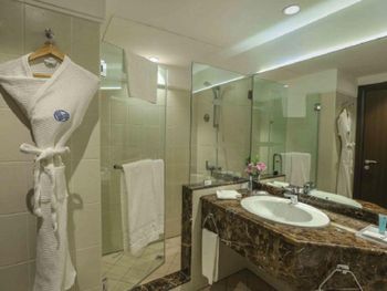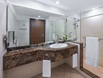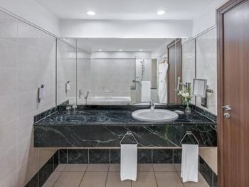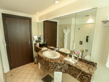 Просторные номера с ванной и душевой. Удобная локация. Быстрый рум сервис 24/7. Удобно при позднем прибытии