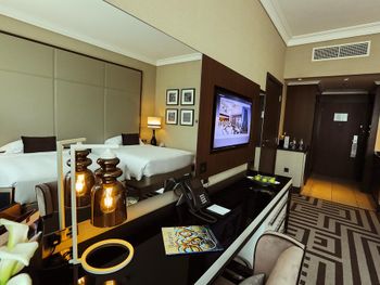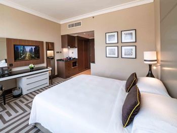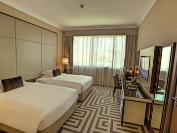 Персонал на ресепшене: при заселении в отель, я была одна с маленьким ребенком на руках, который спал. Администратор делал все максимально медленно, отвлекался на звонки, предлагал мне заполнить анкету гостя, wtf? На мое предложение заполнить ее позже сказал, да без проблем, но почему он сам об этом не подумал, для меня загадка. Самое первое впечатление об отеле было испорченно( Также при моем заселении, выселялась девушка арабка, которая дала feedback по отелю, лицо девушки администратора было просто равнодушное, большую часть диалога она смотрела в компьютер и не поддерживала контакт с гостем, покивала головой и пожелала хорошей дороги) Мне это не понравилось. Мы с ребенком зашли в номер, я повесила табличку не беспокоить, прилегла с ним на кровать ( напомню он спал) и нам принесли багаж стучали и звонили до тех пор пока ребенок не проснулся. В этот момент я четко решила, что в отеле на долго не останусь. И самый большой минус отеля - ЗАПАХ Когда заходишь в номер для не курящих стоит какая-то вонь, не могу описать иначе этот зловонный запах. Я впервые сталкиваюсь в эмиратах с таким, обычно везде приятные арабские запахи, но не здесь. Еще слабое место отеля - лифты, достаточно долго приходится их ждать, но не критично. Очень надеюсь управляющие отеля исправят все недочеты, тк у отеля есть потенциал