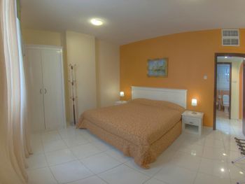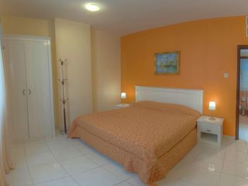 Очень большой просторный номер. Была одна большая двуспальная кровать в отдельной комнате и две односпальные в проходной комнате. Кухня, но там особо ничего не приготовишь. Вежливый персонал, помогли с заездом.