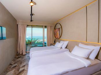 На 5 этаже ресторан, работающий допоздна и с 8 утра на завтраки. Нам дали номер на 4 этаже непосредственно под кухней. Шум постоянный стоял до 1 часа ночи и с 6 утра. Все это понятно стало еще с вечера, но номер нам согласились поменять только на следующее утро. Не было свободных или не хотели делать двойную уборку сказать сложно… к тому же все номера полностью либо частично выходят на море и на центральную дорогу, непосредственно перед отелем. Машины слышны круглосуточно при закрытой балконной двери. После замены номера остался только постоянный шум дороги, но после кухни, это было намного лучше. Номера выглядели чисто, но таракан на полу в углу пролежал 2 суток пока не показали фото на рецепции. Так что чисто или эффект серой плитки сказать сложно. Вообще отель производит не вполне однозначное впечатление. Он достаточно хороший, если вы не реагируете на шум с улицы, но небольшие проколы регулярны. Типа таракана или скисшего йогурта на завтраке и не восполнения элементарных блюд на шведском столе. В частности каждые 2 дня заканчивались огурцы, что странно)