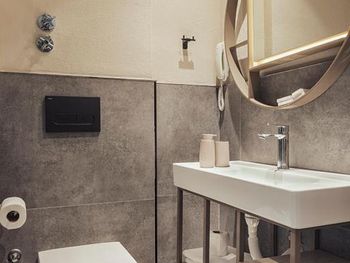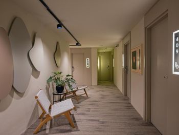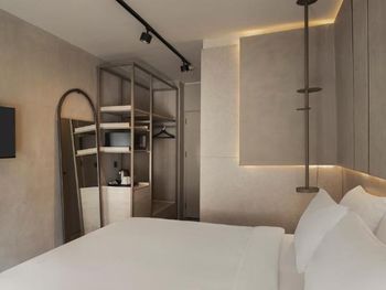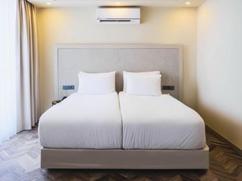 Такое впечатление что постельное было не свежим, на постельном в районе ног был песок, пятна на пододеяльнике. Странные полотенца, ими вытираешься и весь в белом полотенца как будто сыпятся мелкими белыми кусками. Номер маленький, в ванной комнате душ был только в режиме лейки дождь под потолком, а на лейку обычную не переключался. Кондей вообще какой то старинный охлаждал только на 16 градусах😳, но охлаждал, расположен более менее нормально на кровать почти не дуло. БНа ресепшене мужчина был раздражительный. На завтрак не ходили, ничего не могу сказать про завтрак. Балкон очень маленький как то туда умудрились поставить два стула и столик но уже если даже умудришься и сядешь на стул то ноги, тоесть хотя бы колени не поместятся вообще, стулья впритык стоят по стеночкам балкона🙈. Вообщем если проездом на ночь то можно остановиться, но жить да ещё за 80 евро в таком малюсеньком номере и странно мебилированом балконе. Шкафа нет, есть полки и вешалки.