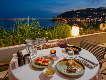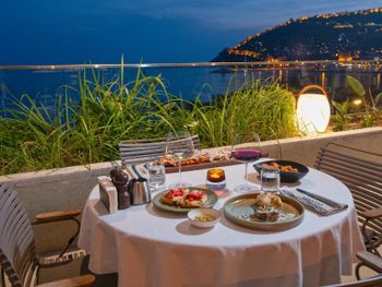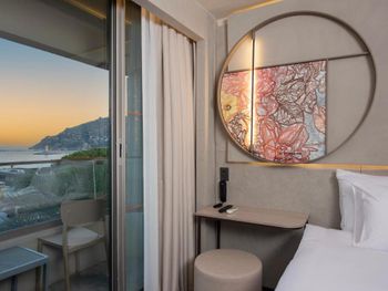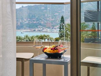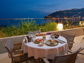 Расположение отеля очень удобно, находится в самом центре, можно пешком дойти до всего. Завтрак с фантастическим видом на горы и море очень вкусный. Персонал очень приветливый. В номерах есть все для комфортабельного пребывания.
