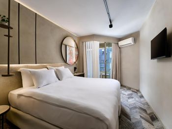 Отдыхали 3 ночи с подругой в этом отеле. Очень понравился вид из номера на море, хотя был всего лишь 2 этаж. Приятная хозяйка отеля из Беларуси, посоветовала несколько мест, как добраться обратно в аэропорт и др. Также на ресепшене был русскоговорящий парень, было легко разобраться в любых моментах. Завтрак проходит на крыше отеля с шикарным видами на город с разных сторон. Выбор блюд не слишком широкий, но вполне достаточно чтобы уйти сытым. Отель очень стильный, лобби и комнаты. На пляж мы ходили подальше, слева от горы проехали несколько остановок и справа от горы, возле Клеопатры. Оба пляжа были с огромными плитами и невозможно было плавать, т.к войти и выйти из воды из-за волн очень сложно и опасно. Хотя я не первый раз в Алании, но в этот раз не получилось дойти до нормального пляжа. Насколько помню, пляж без плит с правой стороны Алании (к Клеопатре) находится ближе к горе. Если подытожить, то все очень понравилось!