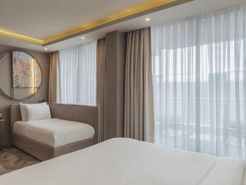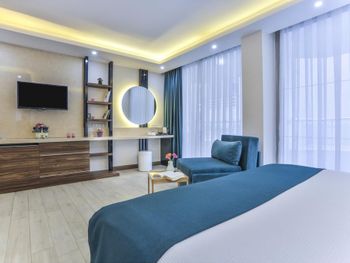🌱 Расположение отличное, рядом есть супермаркет Migros, рестораны, магазины Mudo, LCW, Koton и тд, через дорогу море 🌱Сам отель красивый, на первом этаже в лобби есть кафе paper, очень вкусно готовят, десерты отличные. На 5ом этаже шикарный ресторан Nabucco и там же завтраки проходят. Вид открывается оттуда потрясающий. 🌱Есть балкончик в номере 🌱Приветливый персонал, который говорит и на русском и на английском и на турецком.