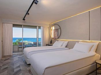 Великолепный панорамный вид на море на завтраках на последнем этаже здания. Реновированный отель. Очень приятный доброжелательный персонал на рецепции. Комнаты маленькие, но достаточно удобные в современном стиле. Хороший удобный матрас и подушки, хорошее постельное белье. Свежие полотенца. Завтрак шведский стол со средним, но вполне достаточным набором продуктов, правда с недостаточным контролем свежести молочных продуктов и поддержания ассортимента в течение всего завтрака.