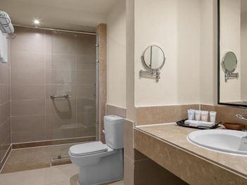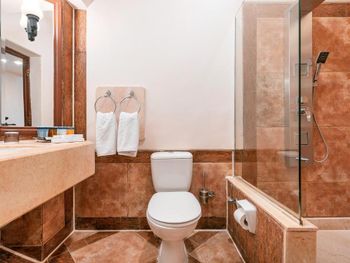 1. От главного здания до основной дороги около 2 км, так вот политика отеля такова, что либо пешком , либо плати 2 доллара с человека за трансфер до ворот, т.к. заказанное тобой такси Убер заехать на территорию просто не сможет, его не пустят. Мы были крайне возмущены данным фактом. Нам так прямо и сказали : "это система". Получается ты в заложниках у отеля. 2. Номера и что самое странное spa-зона - грязные. Даже в сауне везде пыль, мусор. Полотенца после массажа чистые не застилают, я была, мягко говоря, в шоке, когда после нас, полотенца просто разровняли на кушетке и оставили для следующих клиентов. Бррр... В санузлах номеров по углам вообще не моют, там вековая грязь, от этого такое ощущение, что вполне себе новый номер отеля с красивой дорогой каменной мебелью выглядит старым и убогим. Самое удивительное, что общественные зоны отеля очень чистые, все везде вылизано. 3. Ключ от входной двери в номер не работал. Меняли два раза, каждый раз приходилось идти на ресепшен, который в километре от номера, только третий ключ выпросили бесконтактный и с ним проблем уже не было. И вот тут надо сказать спасибо обслуживающему персоналу, который каждый раз помогал нам с открытием двери (открывали своими ключами), чтобы мы не сразу бежали на ресепшен. А вот работникам ресепшен было вообще плевать на нас и на большое расстояние от номера до них, обещали сами доставить нам ключи, но мы их так и не дождались..