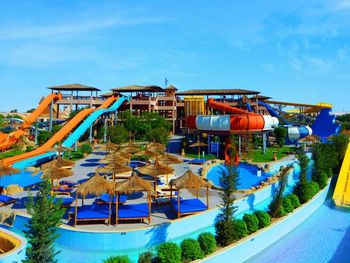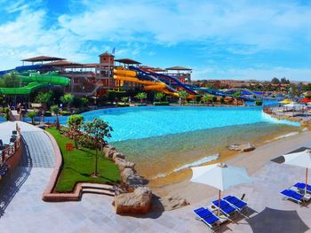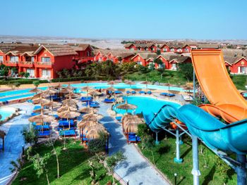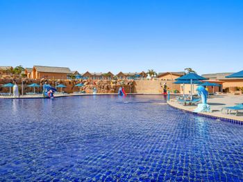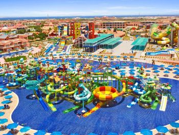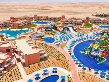 С 32 бассейнами на территории, этот курортный отель в Хургаде напоминает большой аквапарк. К услугам гостей 1 бассейн с подогревом для взрослых, 1 бассейн с подогревом для детей, 11 водных горок и 19 плавательных бассейнов. С террасы или балкона номеров открывается вид на бассейны или сад курортного отеля.