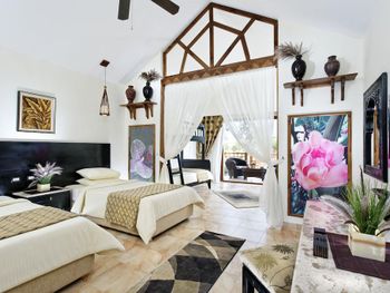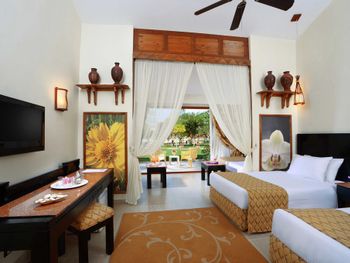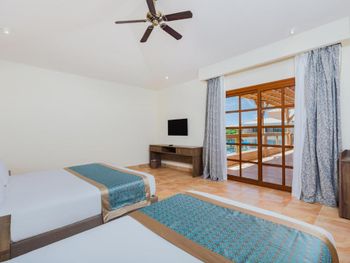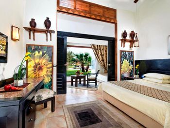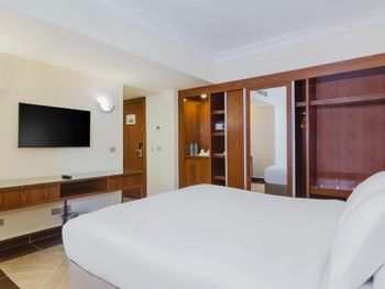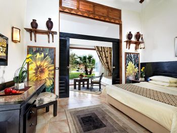 В курортном отеле Jungle Park номера в стиле бунгало расположены вокруг бассейнов. Светлые номера оформлены в теплой цветовой гамме и украшены произведениями африканского искусства. В числе удобств каждого номера — телевизор, мини-бар и собственная ванная комната.