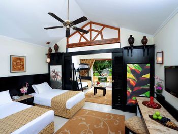 Испортил первое впечатление администратор на ресепшене, который по приезду хотел поселить нас в номер в двухэтажных домиках напротив стройки, который уровнем ниже и дешевле чем забронированый. Однажды охранники не хотели пускать вызванное нами такси внутрь. Когда охраники увидели нас, то начали смеяться и тыкать пальцем, пока машина нас ждала перед шлагбаумом.