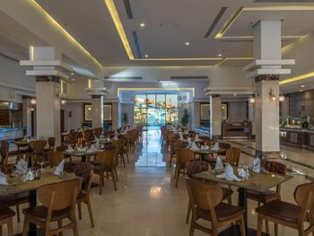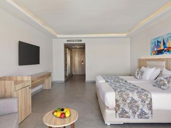 В номерах старая мебель, алкоголь очень ужасного качества, завтраки слабые, обед и ужин так себе... Очень много битой посуды. В номерах очень много муравьев и другой живности. Пляж на любителя, зона для купания в море маленькая. Ресторан "Сопрано" - один бесплатный ужин, но там только "пицца" и паста, очень душно, жарко и шумно. Интернет слабый. Сама территория отеля вся в мусоре ( могу предположить, что это из-за отдыхающих, которые из-за all inclusive ведут себя, как свиньи!!!)