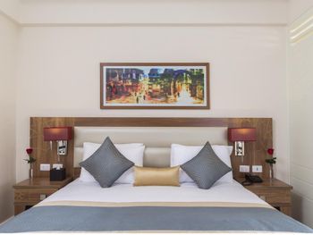 Красивый вид из окон. После жалобы на несоответствие номера на фото на сайте и реальностью, была произведена замена на номер более высокого класса. К сожалению и тут большой минус грязь и пыль везде.
