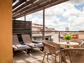 хорошее расположение отеля,в 10-15 минутах от автобусной станции, в черте старого города.Современный, дизайнерский номер.Очень "уютная"кровать. Приятный и доброжелательный персонал. Хорошая звукоизоляция. Вид на внутренней уютный двор.Хороший балкон со столиком ,уютными креслами еще и с сушилкой.