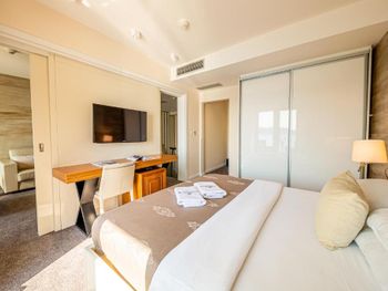 Мы были уже после закрытия сезона, поэтому было прохладно, однако система климат-контроля не работала, и в номере было прохладно, починить систему персоналу не удалось. Также, не понравилось, что в номере многие вещи были не совсем рабочими. Вроде бы мелочь, но показалось что тот уровень сервиса который должен предлагать отель его ценовой категории, не соответсвует ему.
