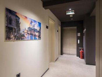 Сам отель очень миниатюрный и стильненький. Месторасположение удобное. Играет музычка ненавязчивая на этажах. Есть лифт, хоть там 3 эт. Приятный ресторанчик внизу. Персонал на ресепшен улыбчивый и приветливый.