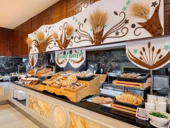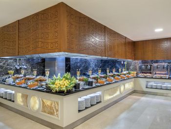 Питание отличное! Морепродукты каждый день в ассортименте. Разнообразное меню! Анимация просто супер! Дружелюбное отношение. Профессиональный персонал. Чистая, ухоженная территория, рядом рынок. Кафе Старбакс на территории отеля. Разнообразные импортные напитки. Ребёнок дважды терял вещи на территории отеля. После обращения на рецепцию все вещи нашлись и были принесены в номер.