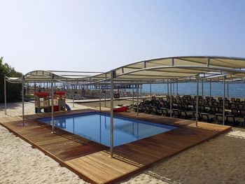 Неудобное расположение бассейна, наверное в сезон там протиснуться невозможно. Просто пройти в сторону пляжа иногда сложно, из-за количество людей. Была скучная анимация, спортивные мероприятия тоже оставляли желать лучшего.