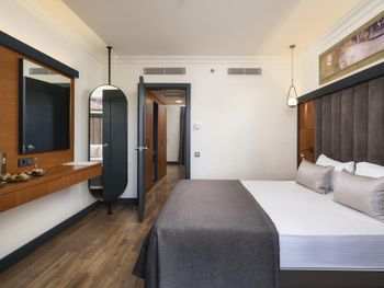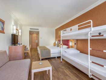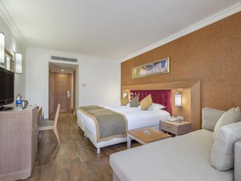 ужасная слышимость в номере, стены из картона, слышно всё что говорят спокойным голосом,вы будете знать в подробностях всё о соседях,если вам попадутся шумные соседи это будет ужас, спать не сможете. Сам отель в часе езды от Анталии, далеко . Такси до города и обратно стоит 80евро. Выбор еды маленький, всё сильно жареное в «дубовой»панировке или какие то кашеобразные сочетания,элементарно нет чёрного сваренного кофе на завтраке, все из кофемашины.Бургеры у моря это-булочка и котлета, без ничего, даже без соуса. От еды удовольствие не получили за время отдыха. Уборка слабая, заехали в ванной на стене висел убитый комар, уезжали он висел также. На решетке кондиционера слой пыли. Кровати у тумбочек облитые чем то и грязные.Запах канализации в ванной присутствует.Номер был в Делюкс. На протяжении дня в отеле скучно, никакой особой анимации нет, вечером шоу но явно не рассчитаны на семьи с детьми, много откровенных нарядов и показов всех частей тела. Для детей вечером только скромная мини дискотека, больше ничего. Территория у отеля небольшая.Очень неудобно из делюкса ходить на основную территорию, нужно пройти мини квест, для родителей с колясками явно будет неудобно. На территории много кошек, это прекрасно. Только один вопрос, привиты ли они от болезней и обработаны ли от паразитов. Дети с ними играют, гладят их, они заходят в рестораны.