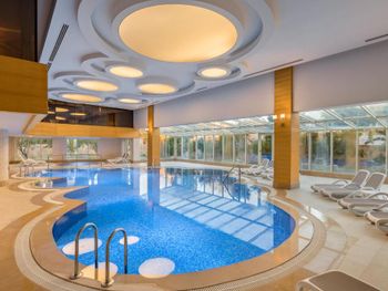 Этот 5-звездочный спа-отель с обслуживанием по системе «все включено» находится в городе Белек, в 40 км от аэропорта Анталья. К услугам гостей отдельный пляж, спа-салон, а также крытый и открытый бассейны с водными горками.