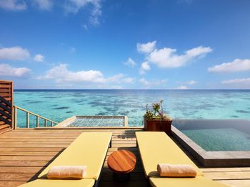 Отдыхали семьей 3 взрослых и 2 ребенка, брали разные номера. Вилла с бассейном на пляже понравилась больше всего. От люкса удобней всего сноркать. Провели замечательные 2 недели.