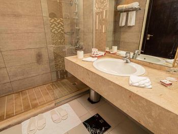 Немного огорчила ситуация, возникшая при заселении. Бронировали номер Делюкс, ориентировались на описание и фото. Заселили немного в другой номер, пришлось убеждать и просить переселить в забронированный номер. Благодаря Рахиму вопрос был решен и нас переселили через две ночи, и мы замечательно провели свой отпуск. Иногда в вечернее время в душе были резкие перепады воды с горячей на холодную.
