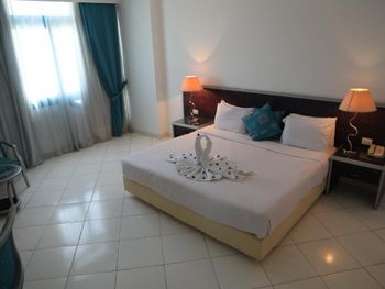Номер старенький, но довольно большой (у нас был стандарт с видом на море). УБорка понравилась. Каждый день менял постель и полотенца. Полотенца новые большие ... ни в одном отеле таких не было.