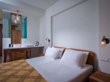 Сам отель выполнен в современном стиле, все чисто, красиво и аккуратно, НО!!! зайдя в номер приходишь в ужас... мебель сделана из фанеры, есть ощущение, что она самодельная и выпилена на заднем дворе! Невозможно открыть шкаф и не поставить занозу! Матрас - это отдельная песня! Пружины покрыты тонким слоем ткани... и все, больше ничем!!! На нем не то что спать, сидеть невозможно.