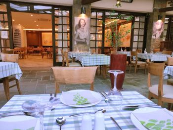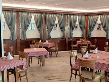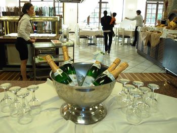 В столовой много персонала, который быстро убирал столы. На ужин для каждого нового гостя стелют белую скатерть.