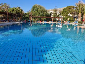 Возле взрослого бассейна новые лежаки и зонтики, бассейн глубокий 2.60 метра.