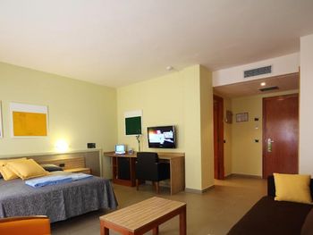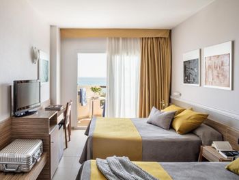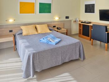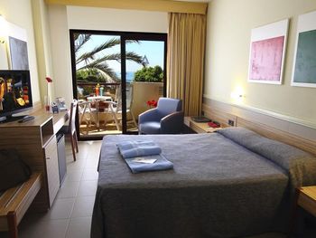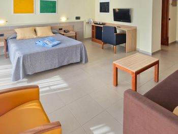 Состояние нашего номера (128) можно назвать печальным- повидавшая жизни мебель, уличная плитка на полу и стене!, неудобные кушетки, проплесневевшая и облупленная ванная комната с треснутой мраморной столешницей. Номер закрывается на ключ с тяжёлым номерком, который нужно каждый раз по уходу отдавать на ресепшн. В один непрекрасный раз, мчась в номер с орущим 8месячным сыном, мне на ресепшене сказали, что у них нет ключа от моего номера, что он у нас на руках. Обстоятельства вынудили из дать мне дополнительный ключ. Поднявшись в свой номер, успокоив плачущего ребёнка, ко мне постучал парень с ресепшн с моим ключом в руках, извиняясь, что ключ всё-таки был у них, но куда-то там завалился.. Ну как бы он просто извинился и всё.. Вообще обслуживающий персонал данного отеля - это отдельная тема: был неприятный случай с пляжными полотенцами. Пришла я на ресепшн попросить 3 полотенца на семью, мне сказали, что за каждое я должна оставить 10 евро залога, итого 30 евро. Когда я верну полотенца, деньги вернут мне. Ок! Деньги уплочены, полотенца взяты в использование. Когда выезжали с отеля, я вернула им полотенца, в ответ на что мне протягивают счёт в 3 евро. Я ничего не понимая спросила, за что я сейчас должна платить?! Женщина за стойкой регистрации сказала, мол, как за что, за тспользование! Это мы вам ещё скидку сделали, нужно 1 евро в день платить за каждое полотенце. Я ответила, что про это мне ничего не говорилось при получении полотенец, только про 10евровый залог! И вопрос тут не в деньгах, а в качестве обслуживания, ведь гость должен знать о финансовой стороне покупаемых услуг до получения таковых, а не после. Эта женщина на ресепшн снова стала доказывать мне, что я, наверное, глупа, так как полотенца мне выдавал парень, вот, его почерк на карточках от полотенец, а он очень хорошо говорит по английски, намекая, что я виновата!