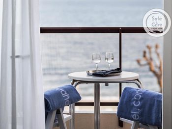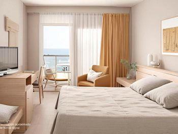 Вид с балкона. Завтраки и ужины. Береговая линия. Русское телевидение. В номере есть мини бар.