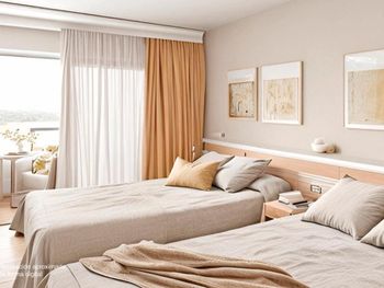 Море и пляж: при отеле всегда были сильные волны, сам пляж хороший и чистый. Мы ездили купаться в Лорет- Дель Мар, там меньше волн. Пляж находится через дорогу и жд пути, есть подземный переход прям напротив отеля. Нам шум электричек в номере не мешал.