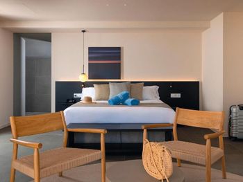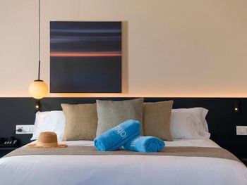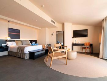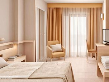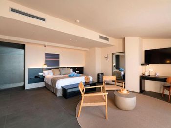 Отель находиться на первой линии, но к пляжу нужно пройти через подземный переход, который попахивает мочой. Возможно отелю можно было взять на себя обязательство по уборке перехода, так как 80% использующих его - постояльцы отеля. По фотографиям с пляжа создается впечатление, что на пляже прям напротив отеля есть частная зона с лежаками. Это не так. В городке вообще нет таких зон, как на фото. есть небольшая зона минутах в 10 ходьбы на 5 зонтиков. Это было минусом, так как для нас был важен пляж и удобства на нем. Хотя отель предложил бесплатно зонтики и через пару дней мы привыкли к полудикому отдыху на пляже. В ресторане большой выбор еды, но вся еда overcooked, так как стоит на подогреваемых чашах, не соленная. Предлагается выбор соусов. Но все же базовые вещи как соль и немного перца должны быть применены сразу при приготовлении. в целом еды много, но все пресное. Нет удовлетворения от пищи. Постель сама хорошая, но сырая. Платный сейф.