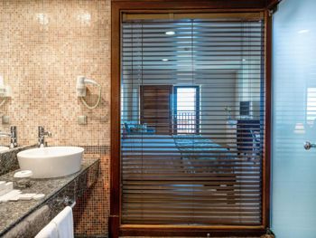 Трудно зайти в номер со стороны балкона (терассы) - на двери отсутствует скоба (простейшая ручка), потянув которую на себя можно открыть дверь. Несмотря на очный заказ "трамвайчика" на рецепции при выезде 18 октября 2025 года (для доставки багажа из номера 1408 на рецепцию) и обещание выполнить этот заказ менеджеры рецепции ДВАЖДЫ "забыли" передать эти заказы водителю (телефон в этом номере не работал).
