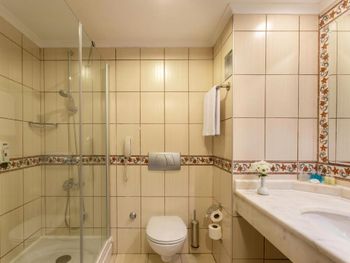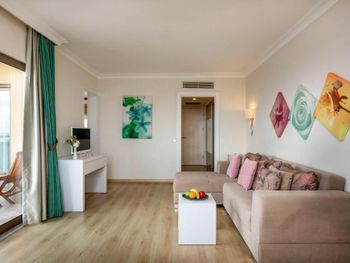 Был заказан номер с видом на море, но при заселении предоставили номер с видом на сад (разумеется, за дополнительную плату номер с видом на море, конечно же, нашелся. Ссориться в первые же минуты отдыха, тем более после долгой дороги просто не хотелось). Ванная комната чистенькая, но требует ремонта (унитаз течет, ванная в трещинах и т.д.) Цены в магазинах при отеле просто космические. В одном из магазинов обманули ребенка (мне назвали одну цену, а когда через 10 мин. ребенок с деньгами спустился за покупкой - намного выше. И, конечно же, до этого прекрасно говорившие на русском продавцы "вдруг" перестали его понимать). Некоторые сотрудники на водных атракционах - просто хамы (детям сделали скидку 10€ на Parasailing вдвоем, на что один из сотрудников сказал прямо нам в лицо, что мы врём, когда мы пришли оплачивать).