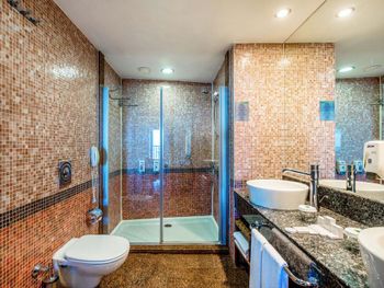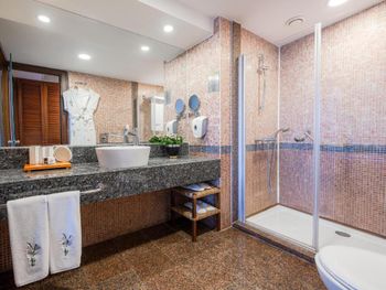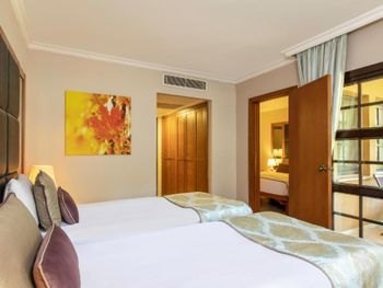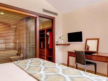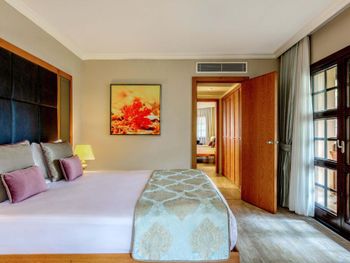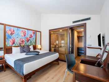 Номер в котором мы остановились, требовал ремонта, особенно ванная. Сам номер не плохой, хороший вид , балкончик, большая комната, большая ванная комната. Также совершенно не продумано место для хранения одежды. Один небольшой шкаф с тремя полками и отсеком для вешалок. Для семьи из 3-4 человек этого совершенно не достаточно. Из-за этого одежду детскую пришлось сложить в тумбочку под телевизором. ного было каких-то неполадок. Например смыв в унитазе- это был целый квест. Вода была чуть теплее комнатной температуры, поэтому любителям горячего душа было холодно. В номере тоже было прохладно, а кондиционер не возможно было установить на тепло, поэтому мы его просто выключили. И ещё шумоизоляция отвратительная в номере. Слышно всё: как говорят и храпят соседи за стеной, как с 7 утра гремит тачками для уборки персонал. Ощущение что ты в больнице, а не в отеле 5*. Также хочется отметить бассейны. Задумка изначально классная - сделать бассейны прямо на этажах жилых комплексов. Красивая подсветка вечером, так и хочется поплавать, расслабиться перед сном. Но у вас не получится это сделать, потому что вода во всех бассейнах ледяная. Всё что остаётся - это сидеть на шезлонге и смотреть на воду. Это огорчило. Так же мини клуб для детей. Для тех, кто рассчитывает приехать и сдавать туда своё чадо на целый день, в надежде что его будут там развлекать - не получится. Персонала мало. Работает 1-2 девочки, и клуб работает по часам с перерывом на обед. Детей можно приводить с 4х лет, но сидеть с 4х леткой вам придётся там самим. Дети постарше могут остаться без родителей, но будут предоставлены сами себе. По расписанию каких-то 40 минут может с ними там и порисуют- полепят (за вашу доп оплату), но всё остальное время детьми никто не занимается. Им там откровенно скучно и неинтересно. В целом отель не тянет на 5* никак. Приехать отдохнуть с целью поесть, поспать и позагорать - вполне не плохо. Но лучше ехать без детей и максимум на 1 неделю. Потом вам станет там просто скучно.