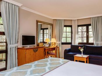 Отель вряд ли тянет на 5*. Номерной фонд оставляет желать лучшего. в бунгало по вечерам прохладно, кондиционер не настроен на тепло. Попросили поменять номер, поменяли, переехали в главный корпус, но заплатили 40 евро, Также у нас выезд из номера был 17.00. нам продлили до 15.00., но заплатили 30 евро.