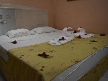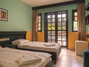Несколько часов отказывались заселить, так как, якобы на букинге неверная цена и разобраться с этим должны были мы сами, так как это не их проблемы, сотрудник -посредник долго не брал трубку, потом оказалось, что он говорил только на турецком. Очень грязно, кондиционер не работал, мы очень замёрзли, на вторую ночь починили старый грязный кондиционер. Одеяла очень старые и грязные, пододеяльников нет. В "ресторане" полная антисанитария, огромное число мух и кошек, на обед и ужин та же самая еда. Весь день играет музыка, если есть электричество, и все окна выходят на бассейн и бар с музыкой. "Горячая" вода только в жаркую погоду, если выключают электричество нет генератора и воды.