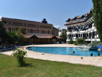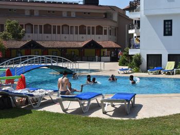 Отель за свою цену 10 из 10. Территория большая и чистая, много зелени и цветов. По территории ходят черепахи, что очень нравится детям, да и взрослым. На территории 2 бассейна. Питание отличное. Я в отеле 2 недели и каждый раз какие-то новые блюда. Еда очень вкусная. Много овощей, сыров. Есть всегда суп и молочная каша. Если вы едете в поездку с детьми, это очень важно. Каждый день разнообразные десерты. В баре пиво и вино. Пиво не пробовала, а вино неплохое. Персонал очень приветливый, все вопросы решают быстро. К морю минут 10 пешком в одну сторону и минут 20-25 в другую сторону. К центру 5-7 минут пешком. Т.е. расположение отличное. Кто ищет бюджетный отель для отдыха в Кемере - однозначно рекомендую этот отель.