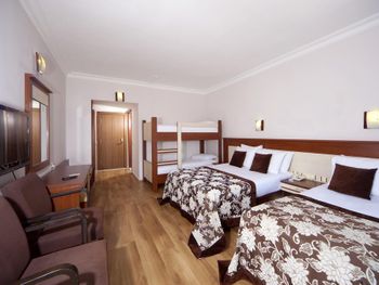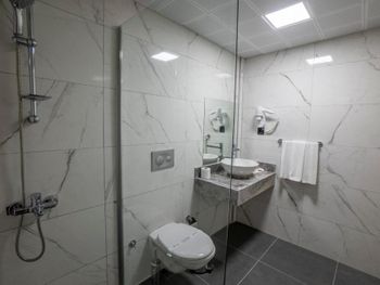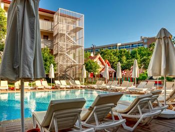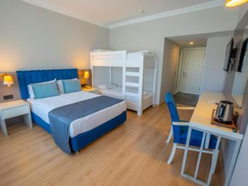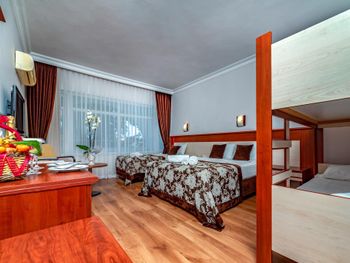 Комары за 4 дня искусали всех. Они в ванной через вентиляцию летят. Отель с этим ничего не делает. На 2й этаж слишком уж крутая лестница. Музыка очень громко играет с 10 утра и до поздней ночи весь день, причём одна и та же, в основном русские песни. Территория маленькая. На пляже шезлонгов не хватает, мы приходили в 9-30 после завтрака, мест не было. В хамам не попадёшь, хотя он включён в бесплатное посещение, но там то за деньги идёт процедура, то он просто не работал. Кларка посредственная, полы были как грязной тряпкой чуть повазюканные. Напитки только в бумажных или пластиковых стаканах. Еду раскладывают, сам не берёшь. От этого везде очереди. Чтоб сесть покушать, надо отстоять в разных очередях. Сначала за овощами, затем за мясным, сладким и т.д. Везде своя очередь. И не факт что положат то, что ты хотел и нужное кол-во. В основном кладут по чуть-чуть и сразу на всю компанию не кладут, так чтоб один пошёл за овощами в другой за мясом, так не получается. Для сравнения, мы через 4 дня переселились в другой отель. И тут такого нет… напитки в стекле, кофе в чашках, еду берёшь сам сколько хочешь. Получается, что они прикрываются антиковидными мерами, видимо так экономят еду. Но это очень не удобно гостям. В отеле отдыхают в основном русские, это напрягало. В последний день отдыха у нашей мамы украли шлёпки около сауны, пока она сидела внутри, просто кто-то вышел и решил обуть её обувь. И украли очки, они были на шезлонге около бассейна, прикрыты вещами, в пакете. Так что соотечественники у нас - врагу не пожелаешь ? В этот отель больше не приедем)!