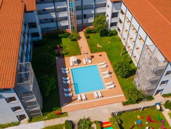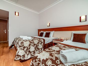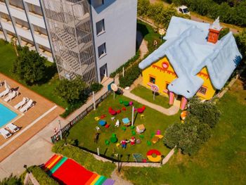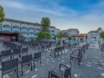 Первый раз пишу отзыв про отель за годы поездок, ибо я в шоке и люди должны об этом знать. Благо мы положили здесь только 4 дня. Сразу предупрежу мы не зажравшиеся путешественники, мы катаемся по странам, живем и в 2* и в 3*, но такое все включено видим впервые. Начну по порядку с заселения. Приехали поздно вечером, в районе 10. Зайдя в холл главного здания чувствовался прокуренный запах помещения. На ресепшене встретила приятная девушка и сразу зарегистрировала нас, предупредив, что позднего ужина у них нет (те с дороги до 8.00 негде перекусить во все включено) но номер мы вам дали один из лучших и вас там ждёт комплимент, просто так (возможно за бронь на букинге, не знаю) Первое, что нас встретило в нашем корпусе это лифт. Лифт в который вы влезете либо с прогулочной коляской, либо с чемоданом. Так мы и поднялись в два этапа. Вообщем, если коляска крупная, то влезет только один взрослый. Далее про номер. Номер нам достался фэмэли на две комнаты с двумя балконами вместо стандарта, так же в номере нас ждали вино и фрукты (за это спасибо) и мужчина, который заправлял детскую кроватку, ходил в грязной обуви по номеру, после которой остались следы. Спасибо ему. Освещения в номере вечером практически нет, только плафоны по краям кроватей, свет в прихожей и в ванной. Отсутсвует стул у туалетного столика? притащили с балкона пластиковый стол в ванную, чтобы ребёнок мог вставать и мыть руки. Кстати в одной комнате туалетный столик есть, а в другой место под него есть, а столика нет, нам хватало, но если в номере живет вся семья, то это недокомплектация какая-то. Так же в душе нет полочек, шампуни приходится ставить на пол. И ещё один из лучших номеров был с видом на соседние здание, отель Ларриса-центр помощи Украинским беженцам, пляжи тоже соседние кстати, если кого-то смущает. Мы заранее знали, что будем соседями, нас это не парило. У нас конфликтных ситуаций не было, все ок.