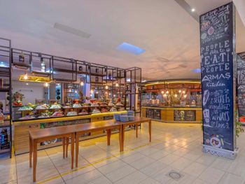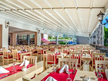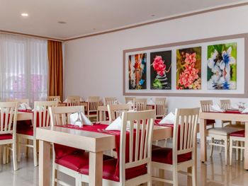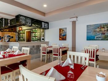 В ресторане подают разнообразные блюда в формате «шведского стола». Позавтракать можно на террасе с видом на бассейн. В баре можно заказать алкогольные и безалкогольные напитки.
