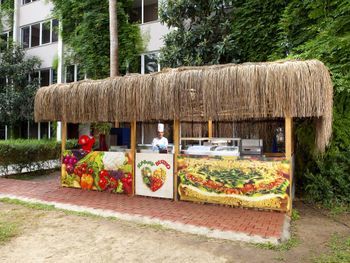 Большой выбор блюд, но не очень вкусная еда, на мой взгляд. Громкая музыка по вечерам.