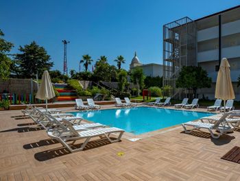 Отель уставший, номера не плохие, но не свежие. В отеле 70% людей (по моим ощущениям) русскоговорящие и менталитет отеля соответствующий. Каждый день с 10 утра до 23 ночи тут играет громкая музыка, почти без перерыва (я не знаю как там жили семьи с детьми, очень громко), большую часть времени русская музыка. Многое не включено в all inclusive: горячая кукуруза и попкорн это платно, алкоголь ночью платно, свежевыжатый сок, процедуры в хамаме платные, кальяны платные. Хамам бесплатный, но пахнет плесенью, аромамасел не добавляют. Еда: разнообразие есть, вариантов как будто много, но все те же самые продукты. Самые вкусные блюда заканчиваются через 15 минут после начала обеда/ужина, где собирается толпа и места за столами не хватает. Рыбы мало, только белая рыба и только жареная. Уборка: часто у нас протирали только пол и ничего больше, воду пополняли через раз, наборы в ванной не пополняли вообще ни разу за неделю. Звукоизоляция номера : в корпусе с номерами на 4 (например номер 4321) ужасная звукоизоляция, из коридора слышно все: слышно как говорят за дверью , слышно скрипучую тележку уборщицы, музыку с бассейна. Просыпались от звуков за окном или в коридоре не раз. Территория отеля не большая, гулять места мало. В описании есть теннисный корт - на самом деле его нет. Полотенца пляжные выдают по времени, 2 часа в день, то есть вечером не взять. Мороженое по времени, тоже 2 часа в день, горки и хамам 4 часа в день. Вход в море песчаный, но под водой много больших острых камней, много волн и из за них вода мутная всегда. Лежаков мало, с обеда до вечера нет свободных мест, с лежаков соседских отелей выгоняют.