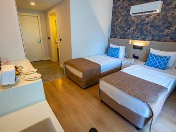 Достаточно отзывчивый персонал. Общее впечатление «нормально», но второй раз в этот отель мы бы не вернулись. Была возможность заселения раньше, но категория номера не соответствовала бронированию. Переселение за дополнительную плату. Неплохая еда.
